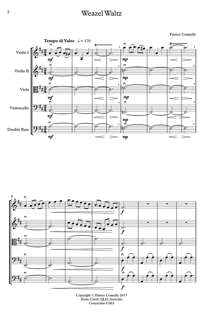 In performance, exaggeration is the key. Try to get your orchestra right into the spirit of the waltz and the tango genre and playing with gusto. A dramatic pause or two won't go astray. The pieces can be played separately or together, and approximate timings are 2'20" and 2'06".