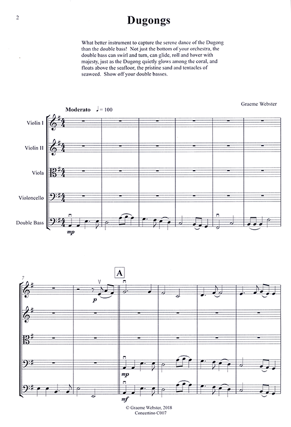 Dugongs features the double bass to show that it's not just the fundament of the orchestra, but it too can swirl and turn, glide and roll and hover with majesty, just like a dugong.