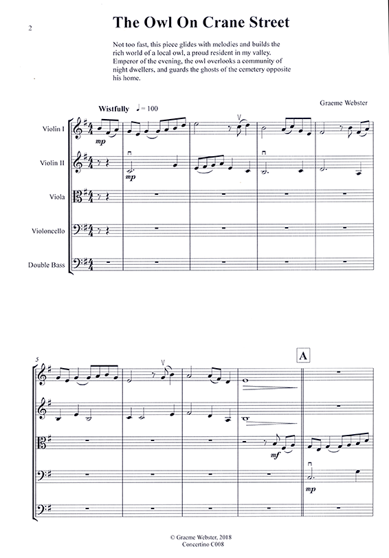 Imagine the rich world of a local owl, a proud resident of my valley. Emperor of the evening, the owl overlooks a community of night dwellers, and guards the ghosts of the cemetery opposite. Don't take this piece too fast, and let the owl glide in the night sky.