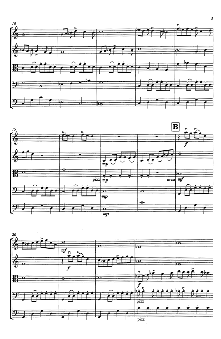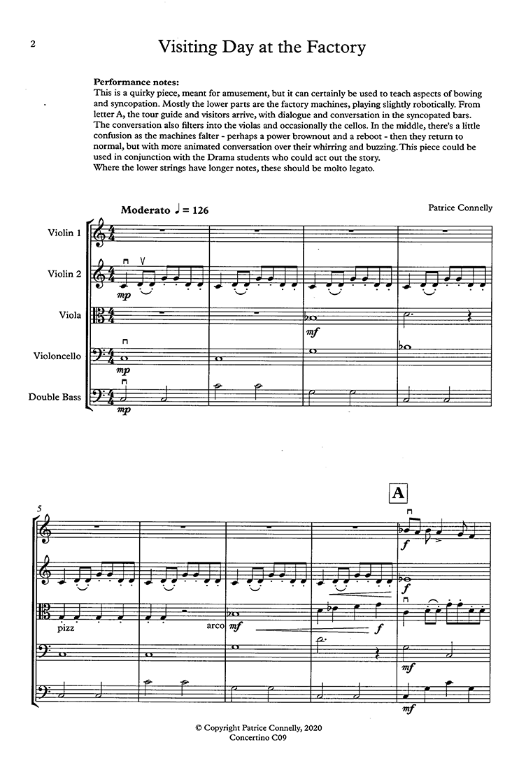 This piece was mostly written for amusement, but it has a number of technical challenges for string players. It would be easy to do with with your drama department making up a little improvised skit to act out during the piece.