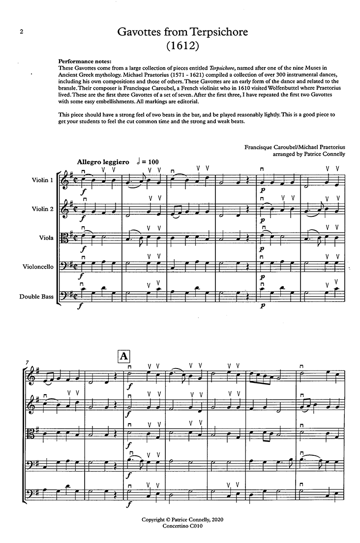 Michael Praetorius compiled a large collection of pieces, which included seven gavottes by Francisque Caroubel. The first three have been arranged in this edition, as they are the most tuneful. Grading 1 - 1.5.